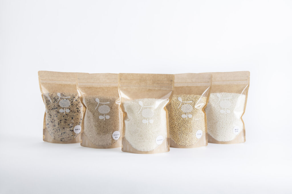 米や野菜といった農作物のほかに、畑の野菜や果実を使った加工品販売を行なわれています。季節によってさまざまな商品を展開されていることもあり、どんな素材にも合う汎用性の高いパッケージを目指しました。